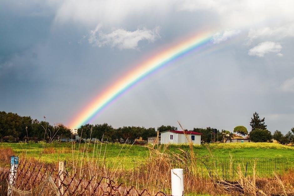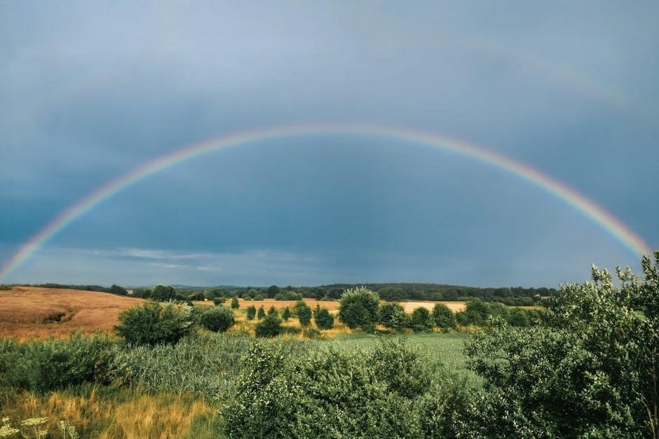 The rainbow‚ a breathtaking arc of color across the sky‚ became a symbol of hope‚ renewal‚ and God’s unwavering faithfulness. Whenever it appears‚ it serves as a powerful reminder of His promise to preserve life and His commitment to humanity. It’s a beautiful visual representation of grace and redemption.